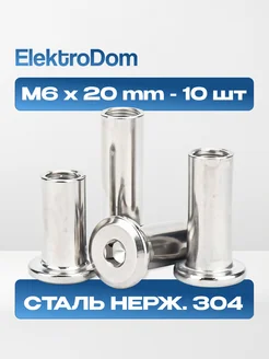 Футорка мебельная М6×20 мм (металлическая) - 20 шт