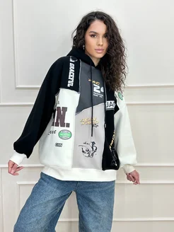Оверсайз свитшот с вязаными рукавами и вышивкой