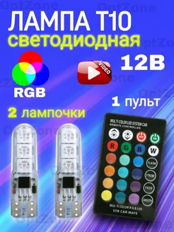 Лампы T10 светодиодные габаритные RGB 2шт с пультом