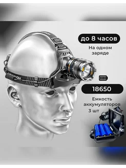 Фонарик налобный аккумуляторный на светодиоде