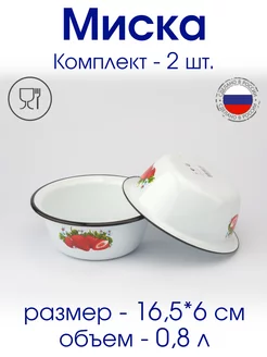 Миска салатник эмалированная пищевая 0.8 л - 2 шт