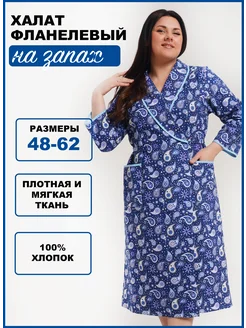 Халат женский фланелевый на запах домашний теплый хлопок