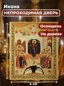 Икона на дереве Богородица Непроходимая дверь, 4*6 см