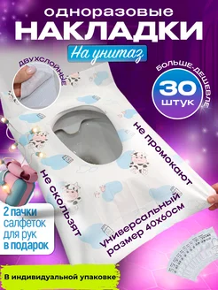 Накладки на унитаз одноразовые двухслойные, комплект 30 шт