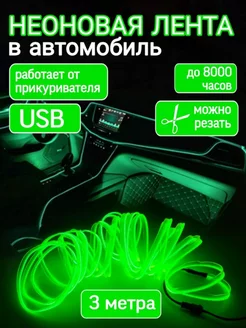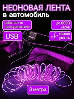 Неоновая гибкая подсветка для салона автомобиля 3м
