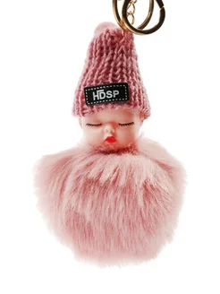 Брелок меховой обвес Пупс на сумку с карабином и ремнем