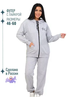 Спортивный костюм женский на молнии с капюшоном без начеса
