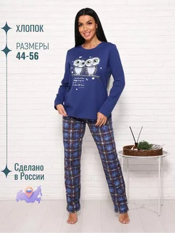 Пижама женская со штанами хлопок с длинным рукавом трикотаж