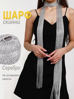 Узкий шарф скинни вязаный серебряный