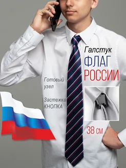 Галстук флаг России школьный синий 38 см готовый узел