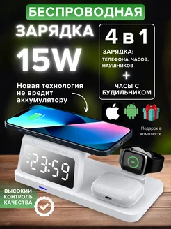 Беспроводная зарядка для iphone, android 3 в 1 с часами
