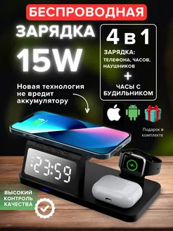 Беспроводная зарядка iphone, android 4 в 1 часы и ночник