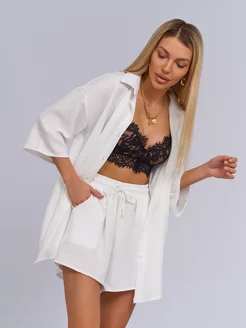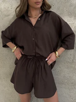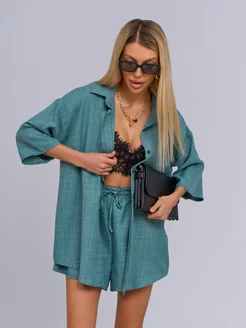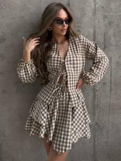 Костюм летний с юбкой двойка пляжный легкий в клетку