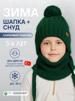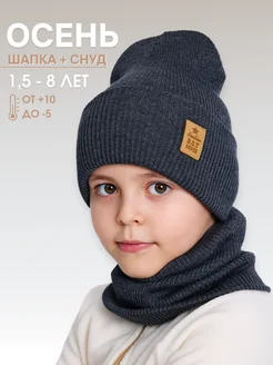 Детская демисезонная шапка бини со снудом