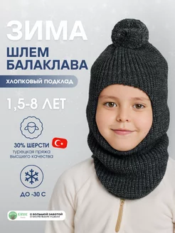 Утепленная вязаная зимняя шапка-шлем с подкладом и горлом