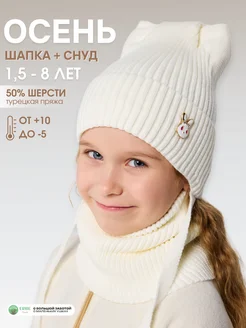 Демисезонная детская шапка кошечка со снудом