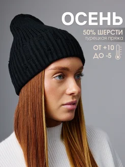 Вязаная демисезонная шапка бини «Рванка» с отворотом