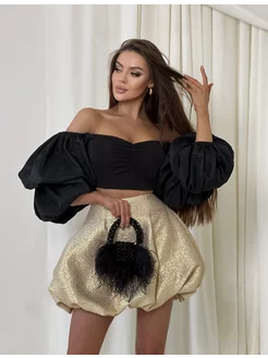 Топ укороченный с объемными рукавами