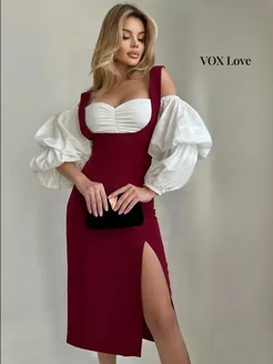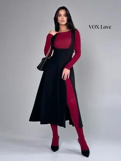 Юбка миди бордо с разрезом офисная