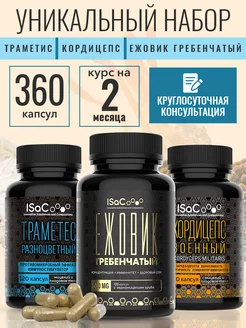 Ежовик гребенчатый, траметес, кордицепс 360 кап по 500 мг