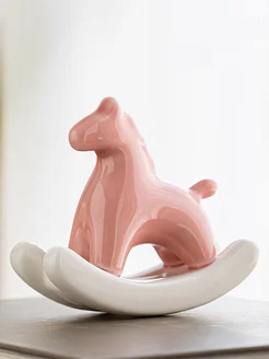 Керамическая лошадка качалка розовая