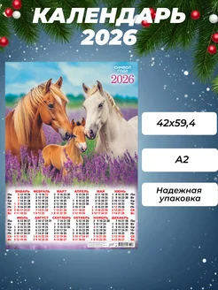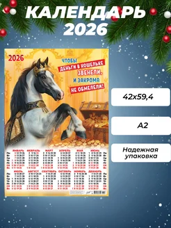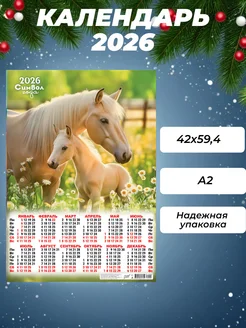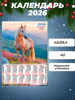 Календарь 2026 настенный плакат, листовой символ года Лошадь