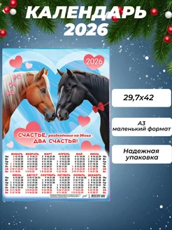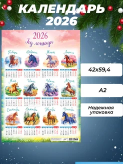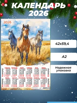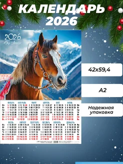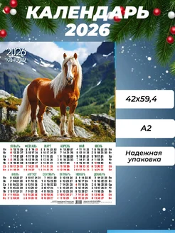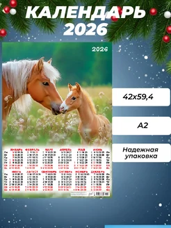 Календарь на 2026 год настенный плакат, листовой Лошадь А2