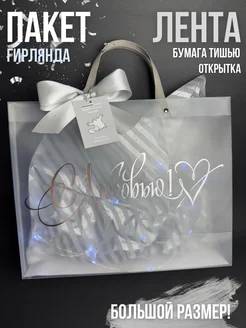 Праздничный пакет подарочный с гирляндой для девочки большой