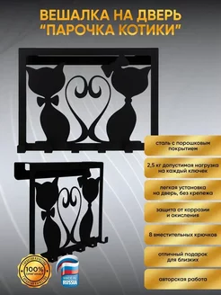 Вешалка на дверь "ПАРОЧКА КОТИКОВ", 36см, черная