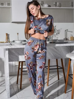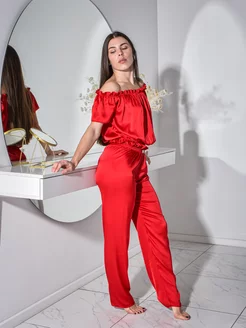 Шелковый костюм брюки и топ