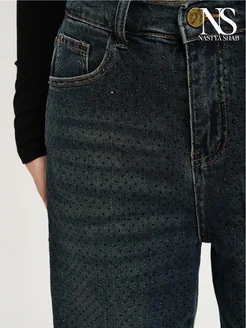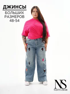 Джинсы широкие со стразами Plus Size