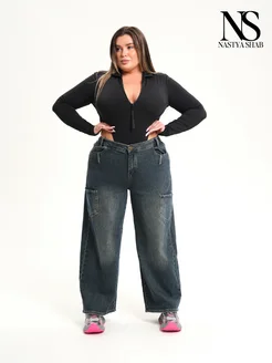Джинсы широкие карго с карманами Plus size