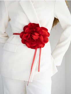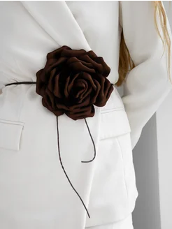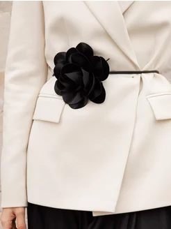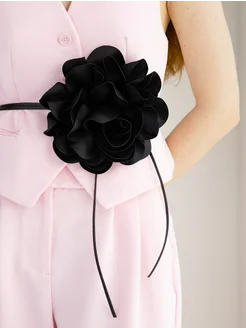 Пояс шнурок ремень с цветком черный для платья тонкий
