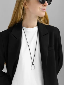 Кулон на шнурке длинный крупный боб фасоль мятый металл