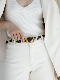 Ремень натуральная кожа замшевый коровий принт кастом y2k
