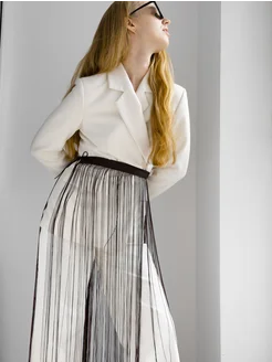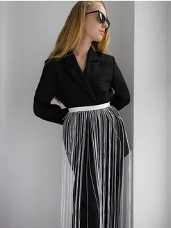 Пиджак женский оверсайз приталенный на завязках удлиненный