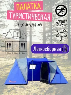Палатка туристическая 4-х местная с тамбуром и навесом