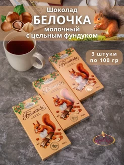 Шоколад "БЕЛОЧКА" молочный с цельным фундуком 100 гр 3 шт