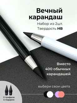 Вечный простой карандаш с ластиком для школы и рисования 2шт