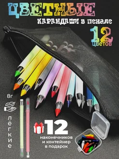 Карандаши цветные вечные для рисования набор 12 шт с пеналом