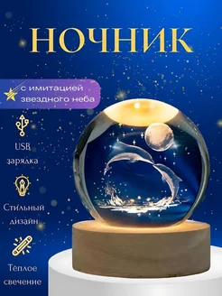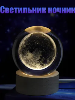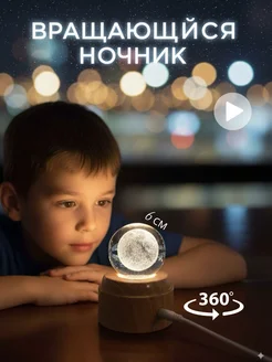 Светильник 3D Стеклянный шар 6 см Вращающийся Луна