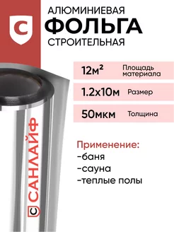 Фольга для бани и сауны алюминиевая 50 мкм 12м2