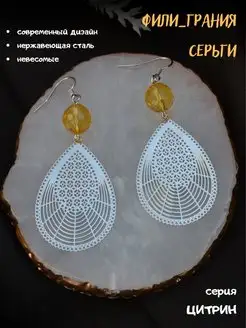 Серьги бижутерные с цитрином