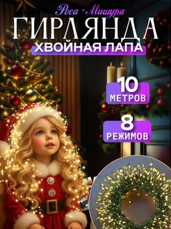 Гирлянда роса мишура светодиодная хвойная лапа 10 метров