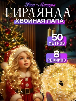 Гирлянда роса мишура хвойная лапа с пультом 50 метров