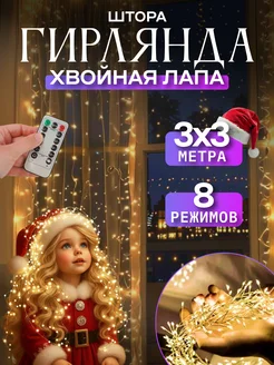 Гирлянда светодиодная штора мишура хвойная лапа 3х3