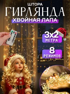 Гирлянда светодиодная штора мишура хвойная лапа 3х2