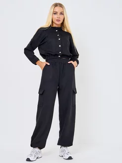 Спортивный костюм замшевый с бомбером и брюками карго