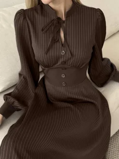 Платье вечернее офисное в полоску