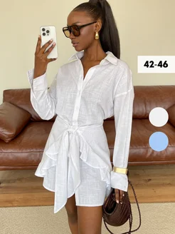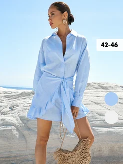 Платье-рубашка короткое с поясом летнее туника